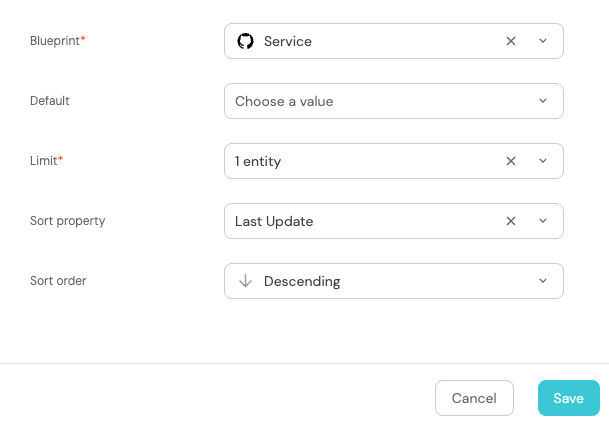 sort | Used to specify the sorting order of the entities in the dropdown | Optional. Default is by entity's title, ascending |