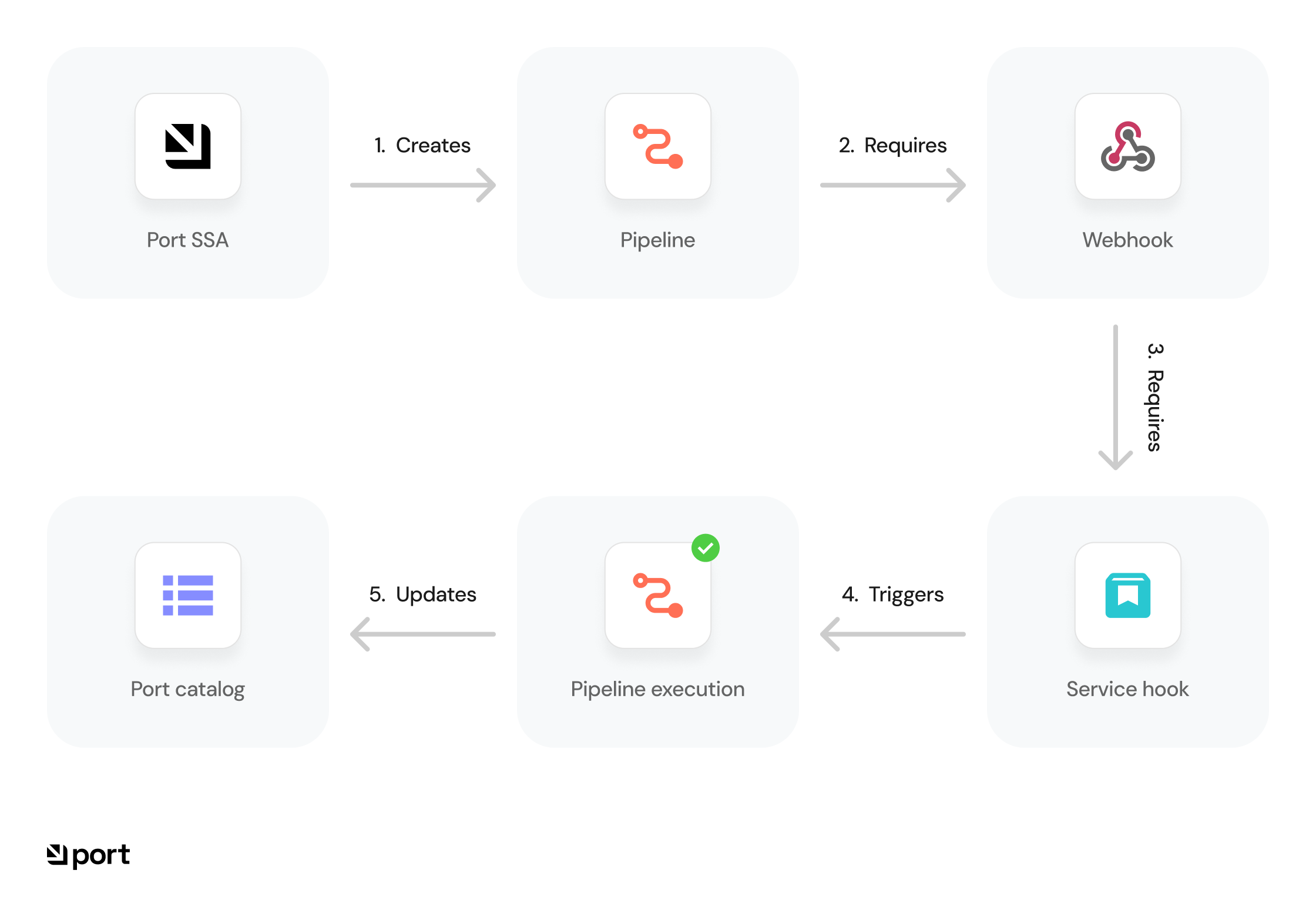 }'Undefined webhook name errorIf you see an "undefined webhook name" error in Port, this may mean your Service Connection or webhook is misconfigured or missing. Try creating a new Service Connection and re-linking your pipeline.