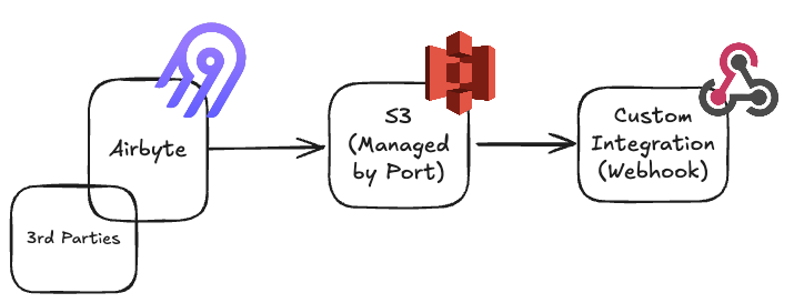 Port allows you to ingest any data source by using Airbyte, storing the data temporarily in S3 bucket, and then triggering ingestion via a Webhook.