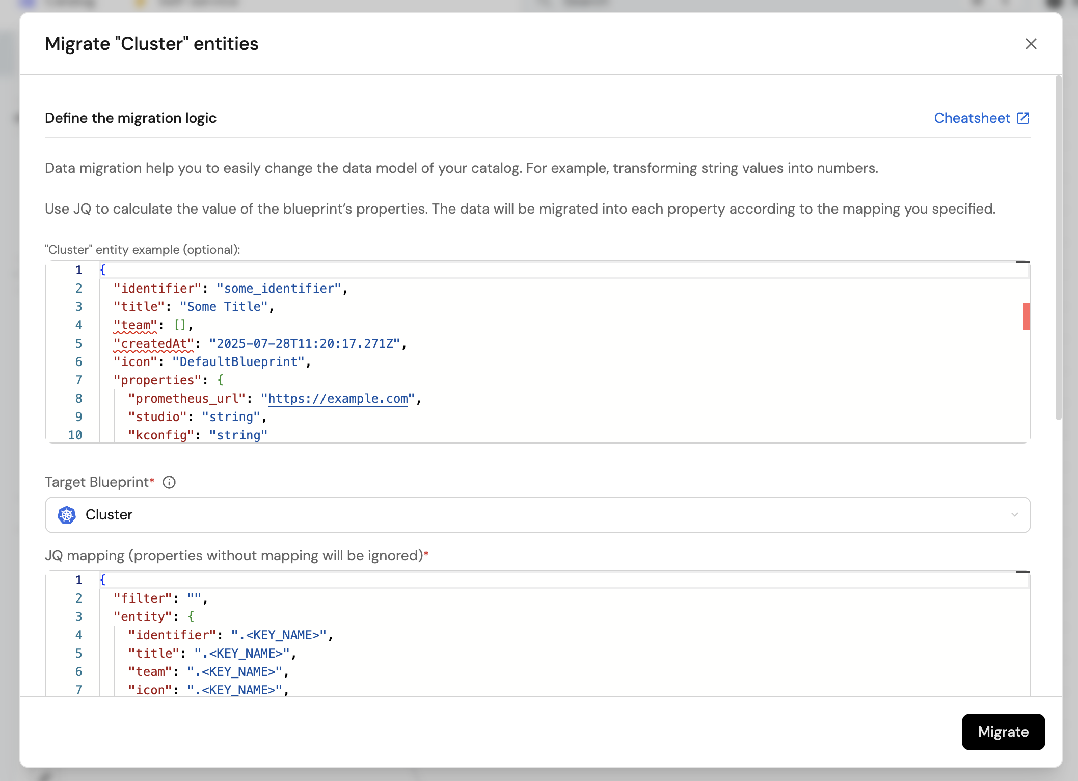 When evolving your software catalog, you may need to migrate existing entities to reflect changes in your blueprint structure. Port provides a simple approach to migrate all entities of a blueprint efficiently and safely.