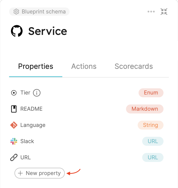 Each blueprint has a properties section under its schema. Each property is defined as an object with the following structure: