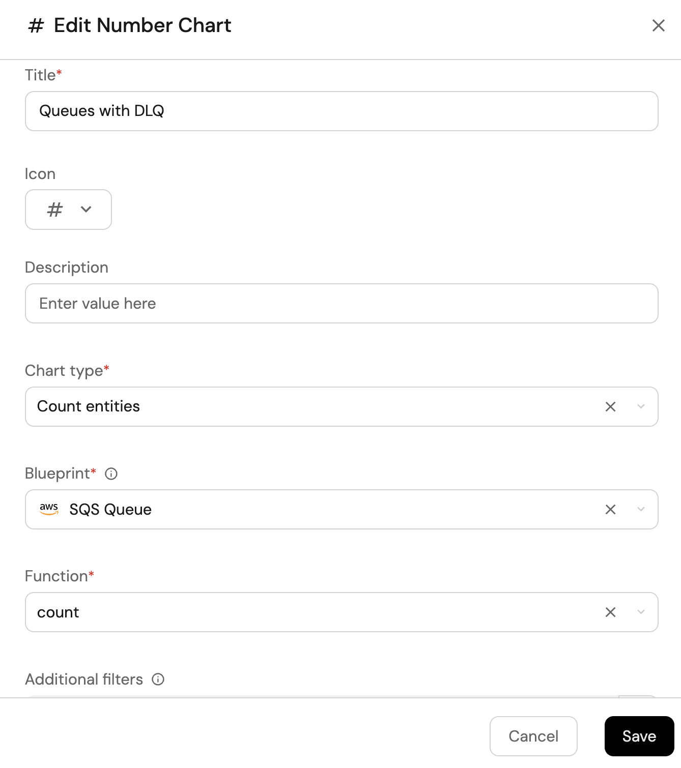 Count entitiesChart type and choose SQS Queue as the Blueprint. -