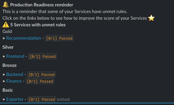 - R&D managers & Platform engineers will be able to remind developers about unmet requirements in the services.