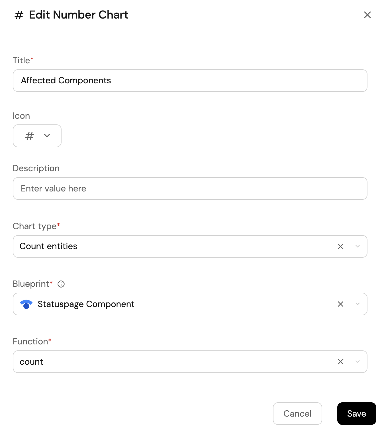 Count entitiesChart type and choose Statuspage Component as the Blueprint. -